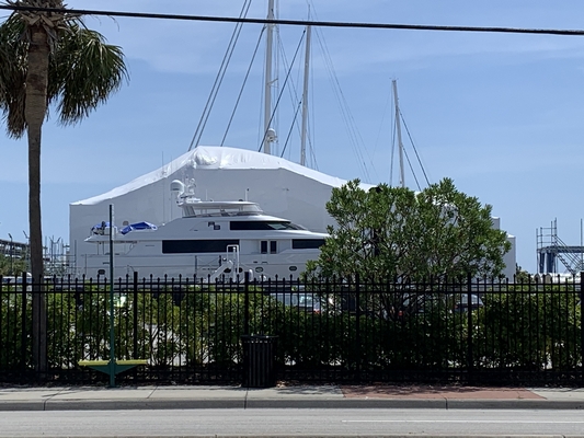Our afternoon ride took us farther north along route A1A. There were bridges to be crossed, ocean scenery to be viewed, divers practicing at a beach along one of the bridges and even a huge shrink-wrapped yacht. WOW!